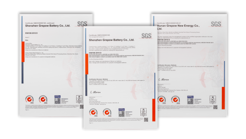 格瑞普電池榮獲 AS9100D 航空航天質(zhì)量管理體系認(rèn)證 質(zhì)量實(shí)力獲國(guó)際認(rèn)可,無(wú)人機(jī)電池板塊邁向高端市場(chǎng)